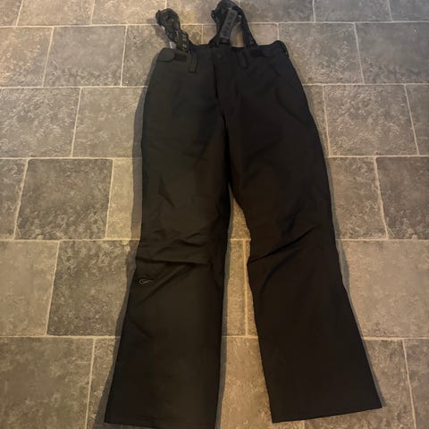 Lätt vadderade, justerbar midja, avtagbara hängslen, snölås nertill.