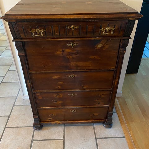 Fin gammal byrå med två lådor och handtagen i smide.