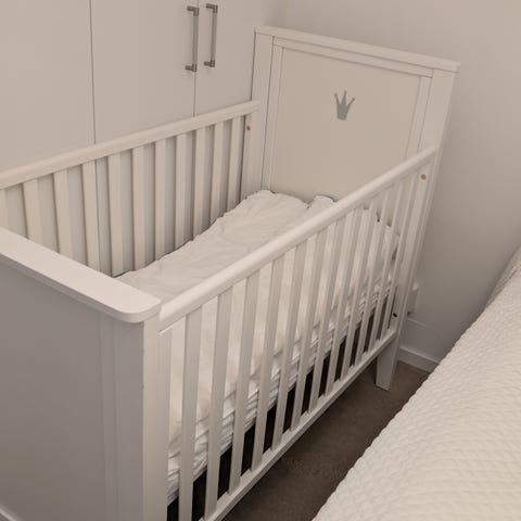 Troll Romantica spjälsäng för barn. Tillverkad i trä med vit finish. Solid säng med en vacker klassisk design. Sängen har en fällbar långsida och sängbasen är justerbar i tre positioner. Förvaringslåda ingår. Oanvänd, madrass ingår. Nypris 3100 kr. Säljes monterad!