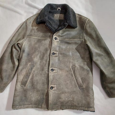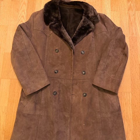 Klassisk Petroff shearling-jacka i brun mocka (pig split) med tjockt, varmt teddyfoder i krage och inuti – perfekt aviator/ rancher-stil från 90/00-talet! Superbekväm och vindskyddande vinterjacka med äkta premiumkänsla.