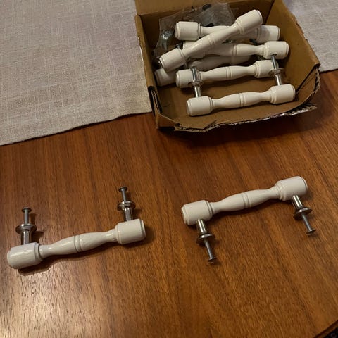 Säljer två porslins beslag/handtag i fint skick. Retro-stil