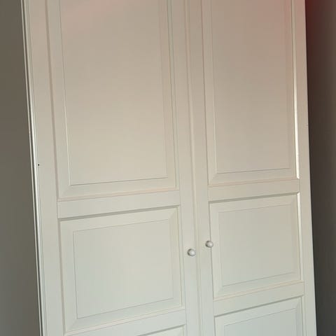 Två vita garderobsdörrar IKEA pax Risdal. Passar till garderobsstomme med höjd 236. Bredd 50 cm/ dörr (100 cm båda dörrarna).