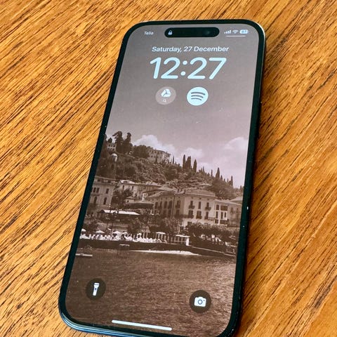 Apple iPhone 15 mobiltelefon med 128 GB lagringsutrymme. Bakskärmen är sprucken annars mycket fint skick, 90% batterihälsa