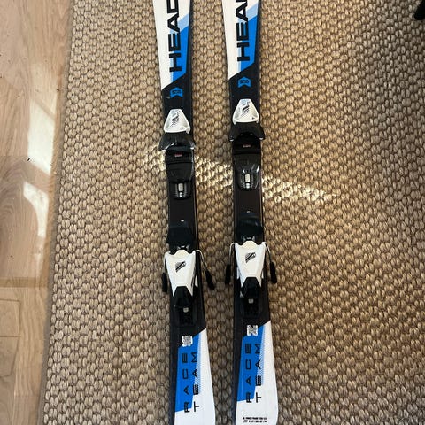 Head Supershape JR skidor, 97 cm, med bindningar och matchande pjäxor, stl 190-195 (motsvarar 30-31), i neonfärg. Använt av ett barn under en säsong.