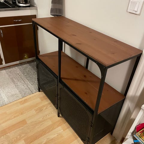 IKEA hylla i trä med flera hyllplan, lämplig för förvaring i olika rum. Produkten är tillverkad av bambu och har en naturlig träfärg.