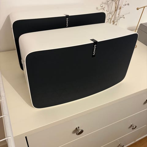 Sonos högtalare med trådlös anslutning och modern design. Passar för användning i olika rum för ljuduppspelning.