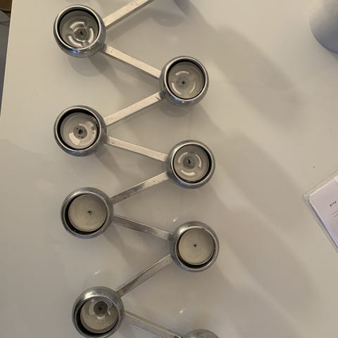 Constella går att förvandla till en ljusstake för höga ljus genom att köpa till aluminiuminsatserna, paketet innehåller fem insatser så för denna stora Constella krävs två paket med ljusinsatser. Det går även att göra Constella till en vas, eller tio små vaser, med hjälp av glasinsatser