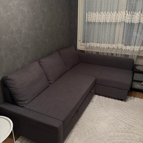 Liten bäddsoffa som är perfekt för ett litet vardagsrum eller studentlägenhet.