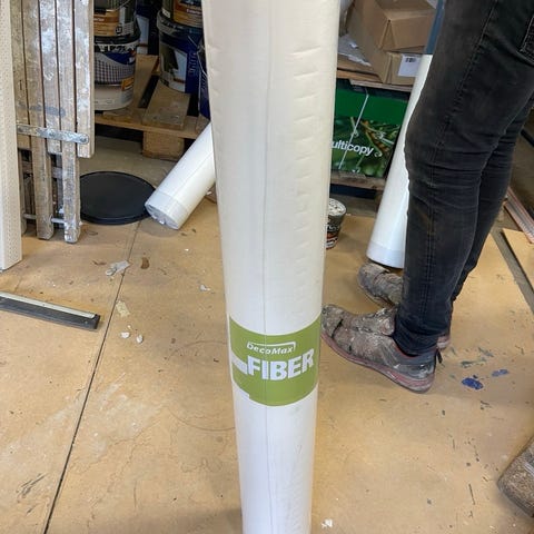 Förbehandlad fiberfilt för väggar och tak. 130 g - 1 m x 50 m per rulle. Mycket stadig och enkel att sätta upp. Flügger motsvarande kvalitet kostar ca 1.600 kr / rulle.