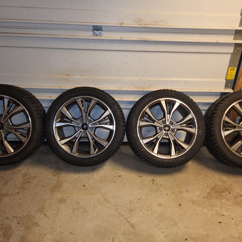 Kompletta vinterhjul med originalfälgar i väldigt fint skick. 7mm är mönsterdjupet på alla 4 däcken. Hittade ett märke på en av fälgarna som jag har markerat.
