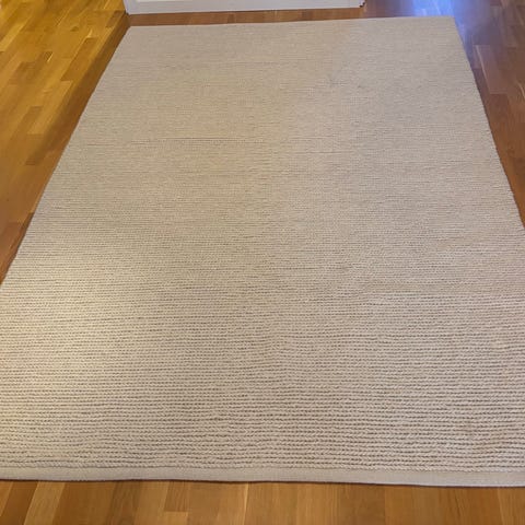 Stor ullmatta från Mio säljes. Mått 200x290 cm. Den är något solblekt på den sida jag har haft uppåt (se sista bilden) men då den är vändbar är det bara att lägga den med andra sidan upp så är den som ny. Från djur- och rökfritt hem. Inget annat synligt slitage.