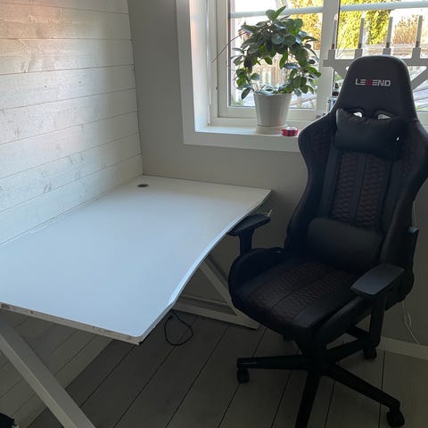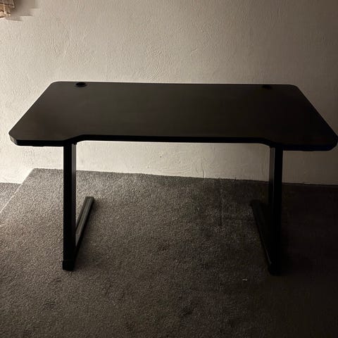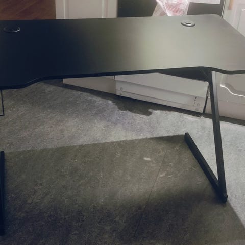 Gaming skrivbord från Jysk. Ca 3 år gammalt men i bra skick. Blå ledbelysning på sidorna, funkar dock bara på en sida. Jag har lagt till en blå ledslinga i bakkant också som medföljer om så önskas.