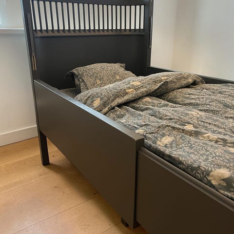 Sänggrinden fästs enkelt på sängens sida och kan placeras antingen i mitten eller vid sängens huvud- eller fotända.