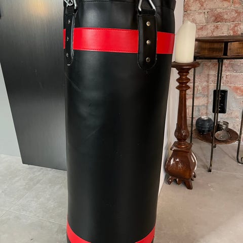 Boxningssäckar med div tillbehör varav 1 par läderhandskar obs 2 olika vikter