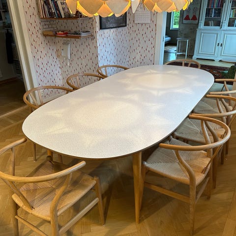 Dukar vi runt hela bordet får vi plats 12 personer.