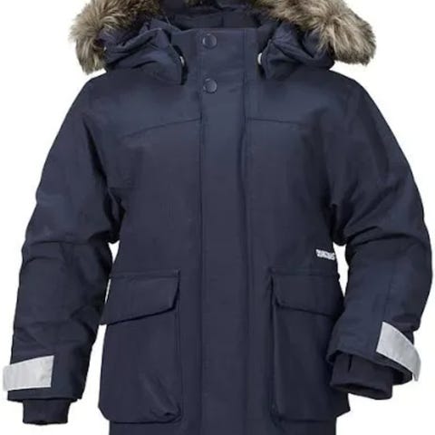 Varmfodrad, vind- och vattenavvisande juniorjacka med värmande, dunliknande vaddering av återvunnen polyester. Jackan har en avtagbar huva med löstagbar syntetpäls och dubbel vindslå vid dragkedjan för att hindra vind och kyla att tränga in. Den är justerbar i både midja och ärmslut för bästa passform, och har reflekterande detaljer vid rygg och ärmslut. Ärmarna har dessutom en invändig elastisk mudd för att skydda mot snö och kyla. Jackan är även försedd med stora, rymliga fickor med mjukt innerfoder, och med ett mjukt foder på insidan av kragen för en varmare, skönare känsla. Jackans ytbehandling är fri från miljöfarliga fluorkarboner och innerfodret är färgat med energibesparande Solution Dye-teknik.