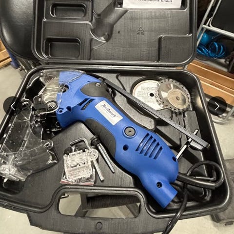 Cotech multi-tool enligt bilder, garage-röjning. Batteriet är inte fräschast i stan, men det finns ersättningar att köpa via Classe när jag kollade i somras. Allt som syns på bilden ingår; papper, batteri o laddare mm.