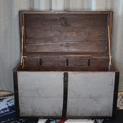 Träkista med metallbeslag