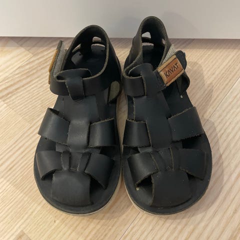 Kavat sandaler i storlek 23 för unisex. Sandalerna har en stängning med kardborreband.