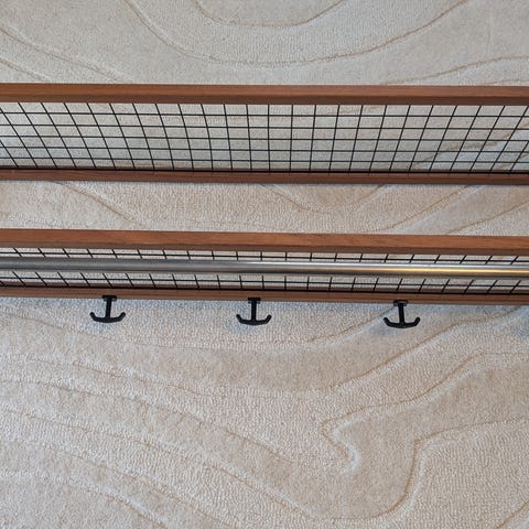 retro, hatthylla, rockhängare, hallmöbel, teak, stringstil, vintage, 50-tal, 60-tal, funkis