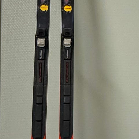 Knappt använda längdskidor med tillhörande pjäxor med storlek 39 och stavar.