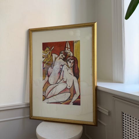 Diego Rivera konsttryck poster med motiv av en kvinna med flätor och vita blommor i bakgrunden. Postern är inramad och har en signatur av konstnären samt texten "Diego Rivera". Passar för inredning och konstsamling.