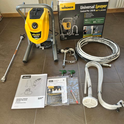 Wagner 350R Universal Airless Sprayer with extension spray head and cleaning kit. New, never used, only removed from the box. Same as: https://www.wagner-group.com/se/goer-det-sjaelv/produkt-tillbehoer/produkt/airless-sprayer-control-pro-350-r/ (except includes the cleaning kit and extension)