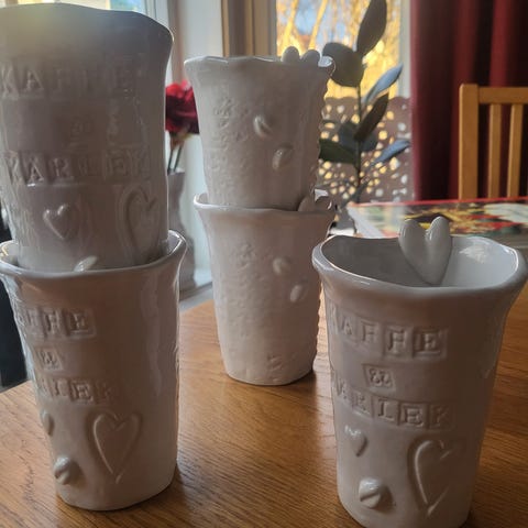 6st muggar, 7,5 cm hög, 11 cm bred, 5 cm botten