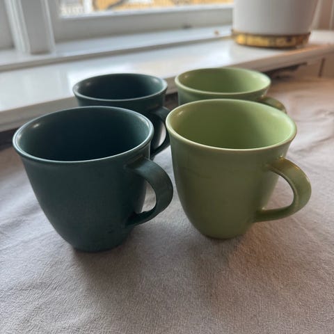 Tekoppar med tekanna från Höganäs Keramik, sent 1960-tal / tidigt 1970-tal.