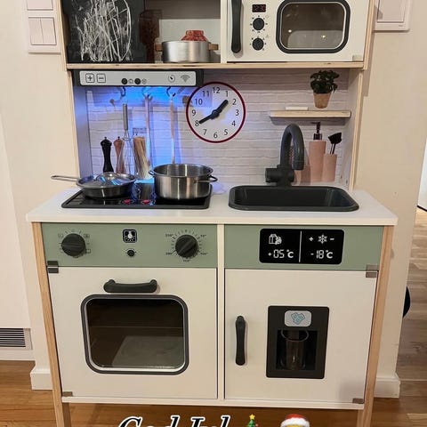 Mycket fint och verklighetstroget kök med kyl/frys, ugn, mikro och spishäll med ljud och ljus ( vet inte om den funktionen funkar då jag inte har batterier hemma just nu)