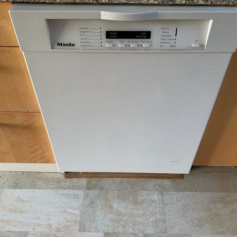 Miele diskmaskin G7107SCUXXL. Köpte den till landstället för 5 år sedan, mycket bra modell som sväljer mycket disk och är väldigt tyst. Tyvärr så har möss varit på besök innan jul tydligen och ätit upp sladden och vatten/avloppsslangen!