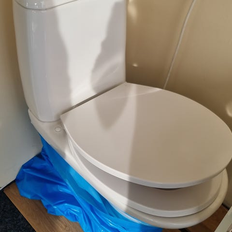 Okänt märke Toalettstol med spolcistern och dekorerat toalettlock