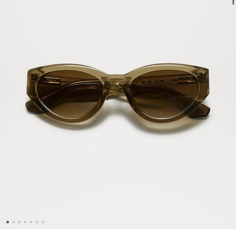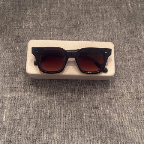 Chimi solglasögon för unisex med fyrkantig ram i transparent brun nyans. Glasögonen är designade i Stockholm och levereras med hårt fodral och mjuk påse för förvaring i kanon skick endast använda ett fåtal gånger.