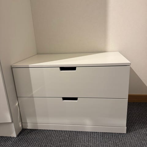 Nordli-byrå från IKEA med två lådor. 80 x 54 cm