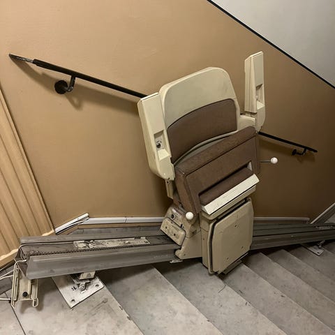 Trapphiss, 16 trappsteg lång. Batterierna är nya. Ni får montera ned den själva. 2000kr om man kan hämta den innan nyår.