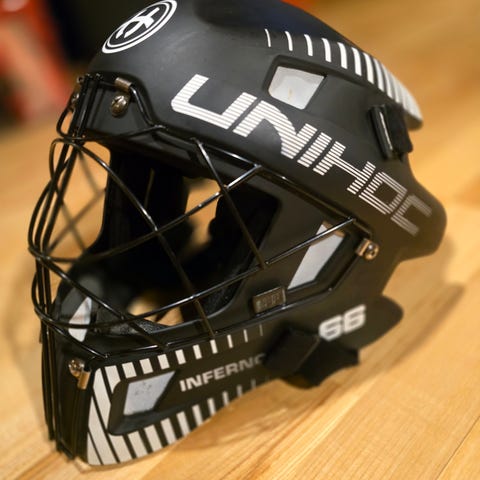 Unihoc hjälm inferno 66 vitt med cat-eye galler. Hjälmen har en stilren design och textbeklädd padding. Den är justerbar med både bakplatta och hakkopp. Tillverkad i ABS-plast och galler i stål. Modellen är godkänd av IFF (International floorball federation). Hjälmen är rengjord och paddingen är nytvättad.