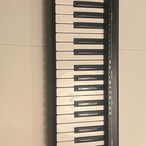 Roland A-49 MIDI Keyboard med 49 tangenter i svart färg. Utrustad med olika kontrollknappar, joystick och anslutningar för USB, MIDI och expression pedal. Passar för användning med dator och musikprogram.