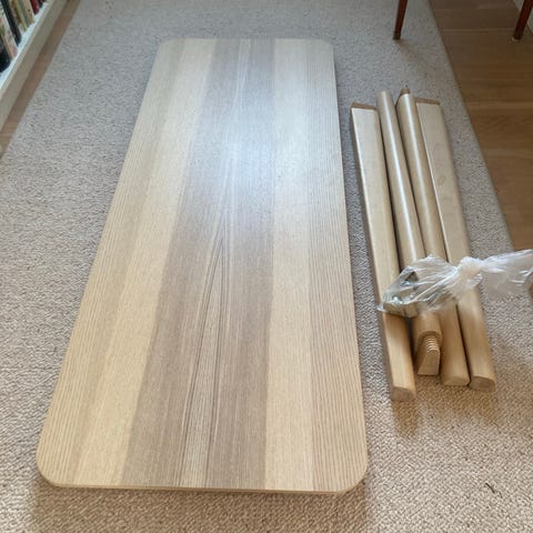 IKEA skrivbord i valnöt med enkel design. Passar för kontor eller hemmabruk. Stabil konstruktion och neutral färg som passar olika inredningsstilar.