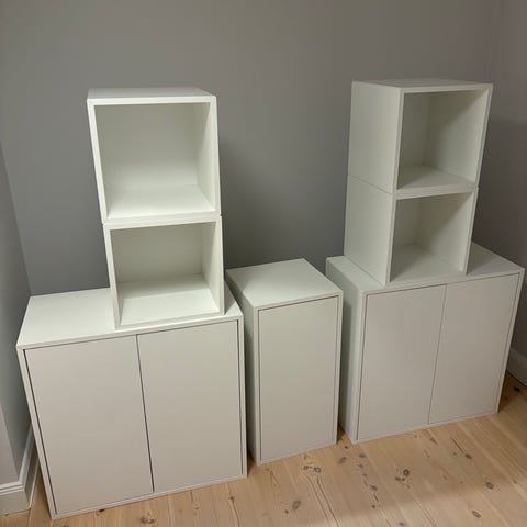 Två stycken IKEA EKET väggskåp med två lådor säljes. Väggfästen ingår.