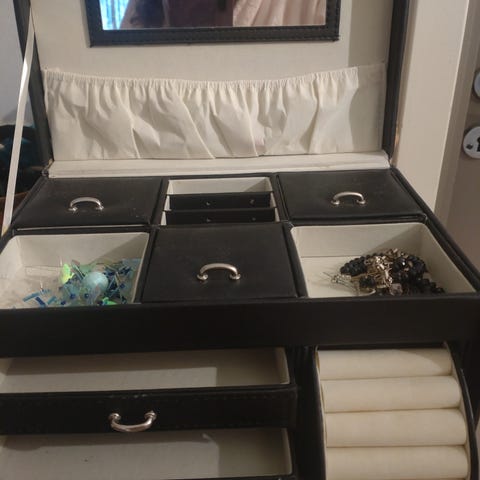 Mycket fint smyckeskrin säljes, komplett med nyckel och reseetui.