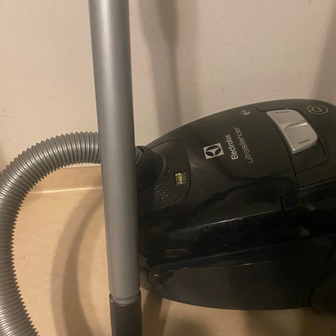 Kraftfull dammsugare ”Dyson” inklusive 4 extra munstycken för rengöring av olika ytor. Ingen påse behövs, man tömmer enkelt behållaren.