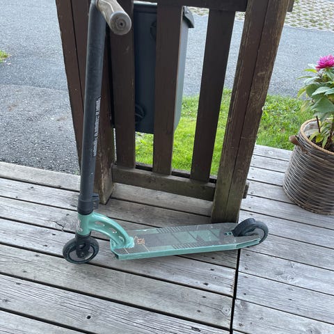 Köpes gammaldags trehjulig sparkcykel . Köpes