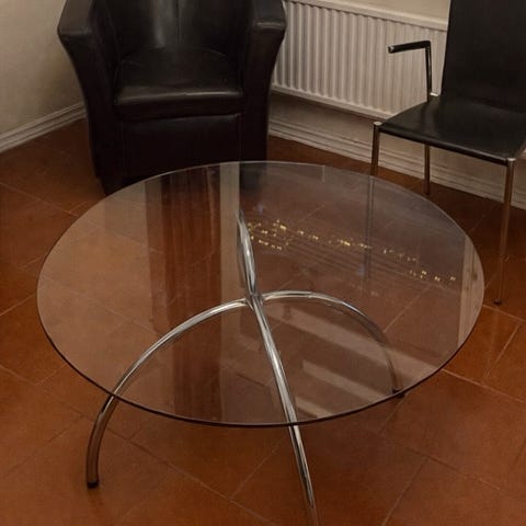 Trären gammal skafferidörr med tillskuren 4 mm glasskiva - hade tänkt göra ett skrivbord eller soffbord av den men tiden räcker inte till