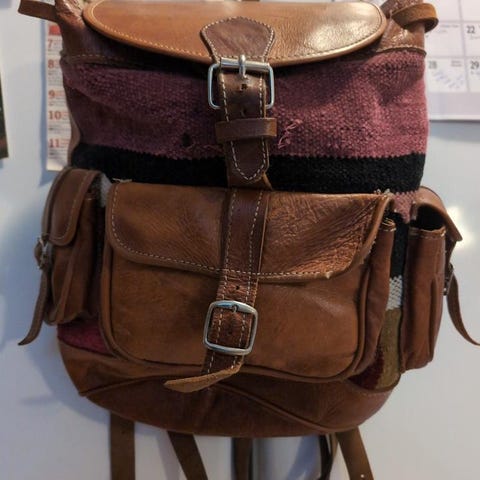 Den här ryggsäcken är gjord av högkvalitativt läder och har en elegant och modern design. Den har ett rymligt huvudfack och flera fickor för organisering. Ryggsäcken är perfekt för vardagligt bruk eller för att bära dina nödvändigheter.