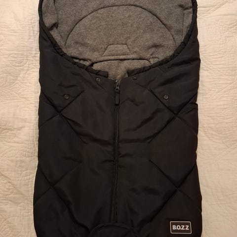 Åkpåsen har uttag för fempunktsbälte, tryckknappar för att kunna öppna upp åkpåsen upptill, dragkedja i mitten och vid fotändan gör att hela påsen kan öppnas upp och kan användas som lektäcke på golvet eller i sängen.