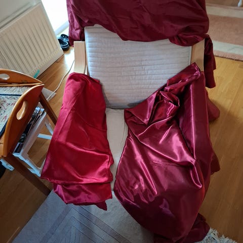 Setet har varit det minst använda av tre under det senaste året (uppskattningsvis tvättat 5ggr), och säljes nu eftersom färgen inte kommer passa sovrummet efter ommålning. Inga skador, missfärgningar eller dylikt.