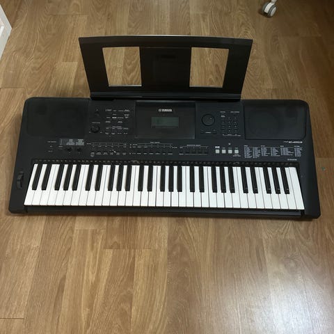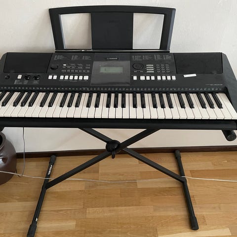 Yamaha PSR-E463 keyboard med 61 tangenter och inbyggda högtalare. Instrumentet har flera funktioner inklusive olika ljud och rytmer, display för inställningar samt anslutningsmöjligheter. Passar för både nybörjare och mer avancerade användare.