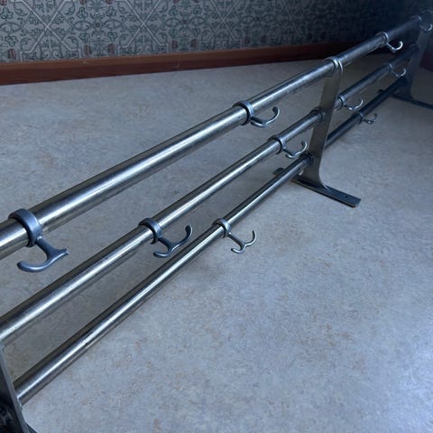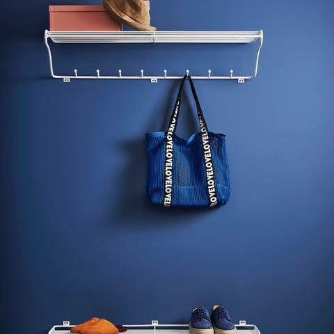 En hatthylla + en skohylla inköpta på Byggfabriken, design Gunnar Bolin