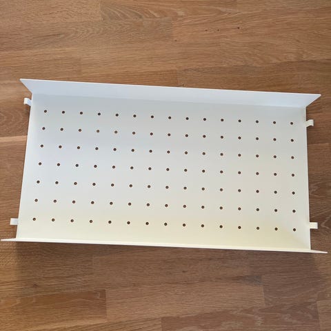 String Furniture metallhyllplan hög kant i perfekt skick. Efter flytten fanns inte behovet kvar. Hämtas på plats, betalas med swish. Ord. pris 799kr. Läs mer på https://www.stringfurniture.com/sv-se/series/system/shelves/metal-shelves-high-w78-x-d20-x-h7-cm-white-1-pack