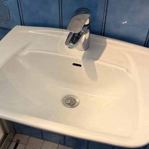 Gustavsberg Artic tvättställ med måtten 60 cm i bredd och 40 cm i djup. Blank vit. Oanvänt i bruten kartong, vi köpte fel färg!